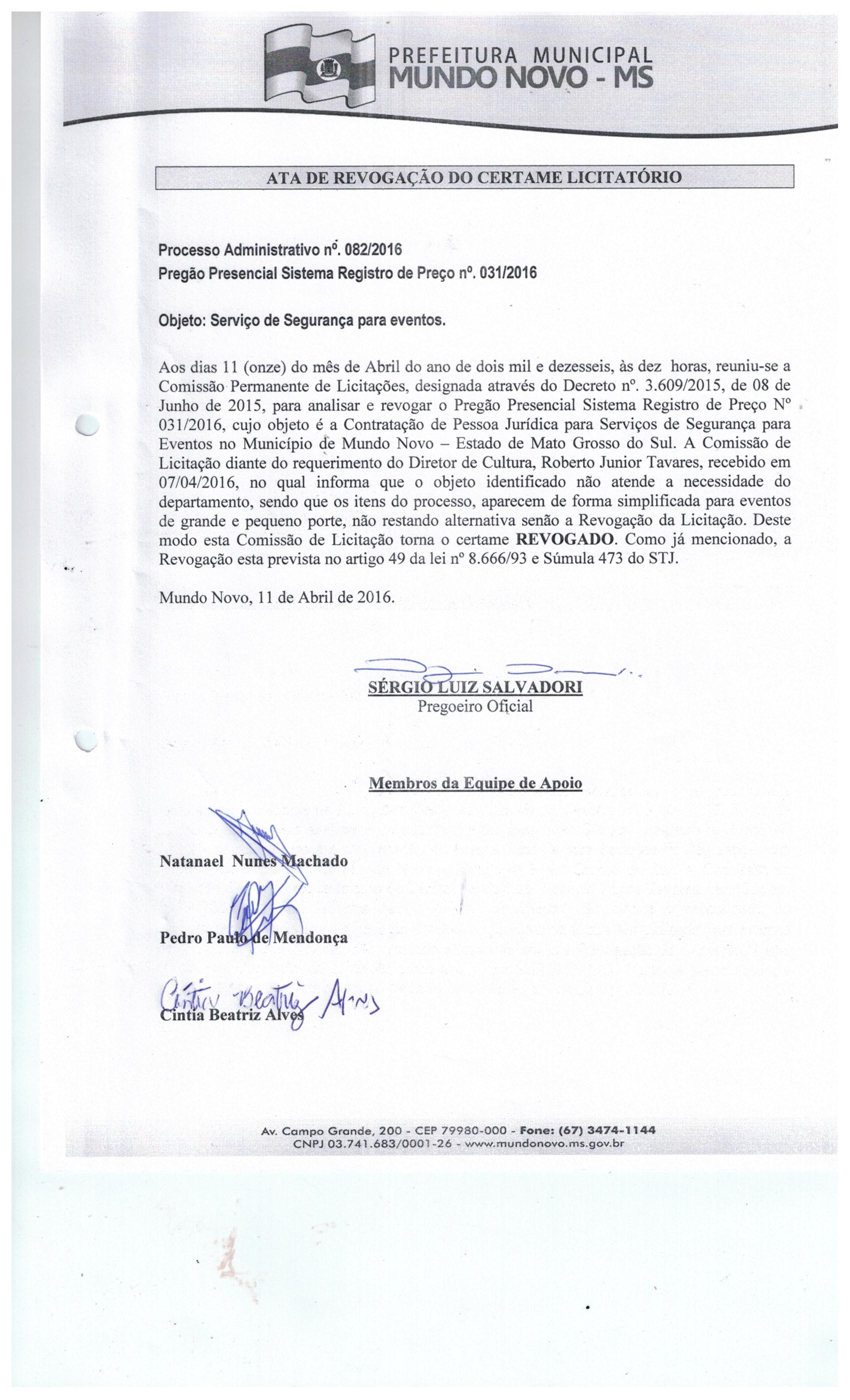 SERVIÇOS DE SEGURANÇA COM MONITORAMENTO 24 HORAS, NAS DEPENDÊNCIAS DOS PRÉDIOS PÚBLICOS CITADOS NO TERMO DE REFERÊNCIA, EM MUNDO NOVO - MS, EM ATENDIMENTO ÀS SECRETARIAS MUNICIPAIS PARTICIPANTES.